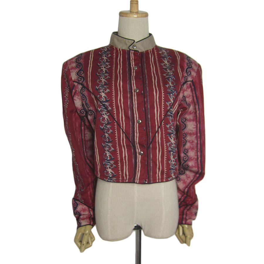 USA古着。Wranglerの、レディース サウスウエスタンシャツ。肩パットが付いています。ボタン式。■状態について■表面に多少の毛羽立ち・軽い色褪せ感あります。