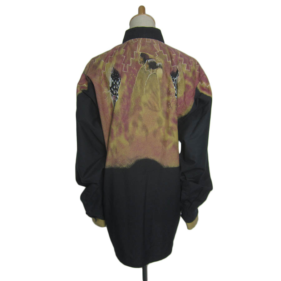 USA古着。Wranglerの、レディース ネイティブ柄シャツ。ボタン式。■状態について■表面に多少の毛羽立ち・薄っすらとした色褪せ、左脇の縫い目部分の上生地に、伝線解れが見られます。