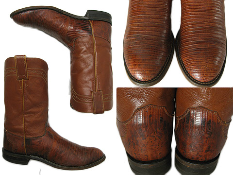 商品番号: pb-222 \8,610 売り切れ ■ブランド■Justin ジャスティン ■製造国■USA製 ■(表記とそれに基づく変換サイズ) 8D→約25.5cm位の方にオススメ ■採寸■計測方法 総丈 約27.5cm, 履き口周り 約35.5cm, ソール最大幅 約 ワイズ 約26.5cm, ヒール高さ 約2.5cm ■甲部分=本革・上部=本革 ■レザーソール ■状態について■ ★総合★中古品ですので使用感はありますが、使用上問題となるようなイチヂルしい損傷は見当たりませんでした。 ★表面★甲リザード表面に擦れ、右足の側面に鱗模様に沿ったシワによる表面のヒビ割れが見られた為、補強の意味で表面を接着補色したリペア痕、つま先・かかと周りに擦れ・擦れ汚れ、サイドパイピングにヒビ割れあります。(写真参照) あまりにも神経質な方はお控え下さい。 ★ソール及びヒール部分★ソールは75%程度の使用感で、まだまだいけます。 ★靴の中★本革ライナーに使用感、表面に擦れ汚れはありますが、特に問題ありません。 ★ポイント★USA古着。Justin製、ローパーブーツです。甲にリザードを使用した総本革製になります。 |