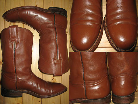 商品番号: pb-281 \7,875 売り切れ ■ブランド■COWTOWN ■製造国■MEXICO製 ■(表記とそれに基づく変換サイズ) 7D→約25.0m位の方にオススメ ■採寸■計測方法 丈 約27.0cm, 履き口周り 約37.0cm, ワイズ 約25.5cm, ヒール高さ 約2.5cm ■甲部分=本革・上部=本革 ■レザーソール ■状態について■ ★総合★中古品ですので使用感はありますが、使用上問題となるような損傷は見当たりませんでした。 ★表面★甲にシワ・シワ周りに擦れ、つま先・かかと周りに擦れ・擦れ汚れ・汚れ・軽い擦り傷、上部脛やアキレス腱周りにシワ付きによる擦れ・擦り傷、サイドパイピングにヒビ割れ破れあります。(写真参照) あまりにも神経質な方はお控え下さい。 ★ソール及びヒール部分★ソールは80%程度の使用感で、まだまだいけます。 ★靴の中★レザーライナーに使用感、履き口周りに多少の擦れ汚れはありますが、特に問題ありません。 ★ポイント★アメリカ購入のCOWTOWN製ペコスブーツです。甲に付いたシワ溝、上部の擦れが茶系本革ならではの良い味わい出しています。 |