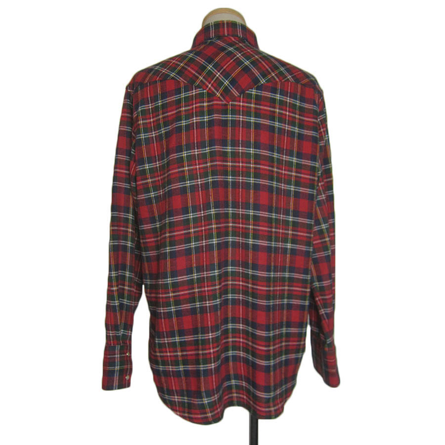 USA古着。Wranglerラングラーの、タータンチェック柄 ネルウエスタンシャツ。■状態について■表面に毛羽立ち・多少の毛玉・軽い色褪せ感あります。