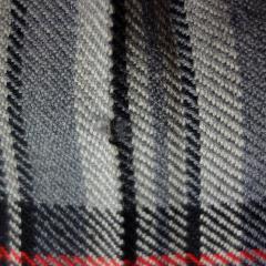右前プリーツの折り目部分にも、4mm幅程の解れ穴が見られます。