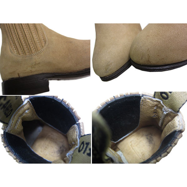 つま先・側面・かかと周りに擦れ・擦れ汚れ・黒ずみ・表面の軽い擦り傷、右足脛付近に細かな染み汚れあります。