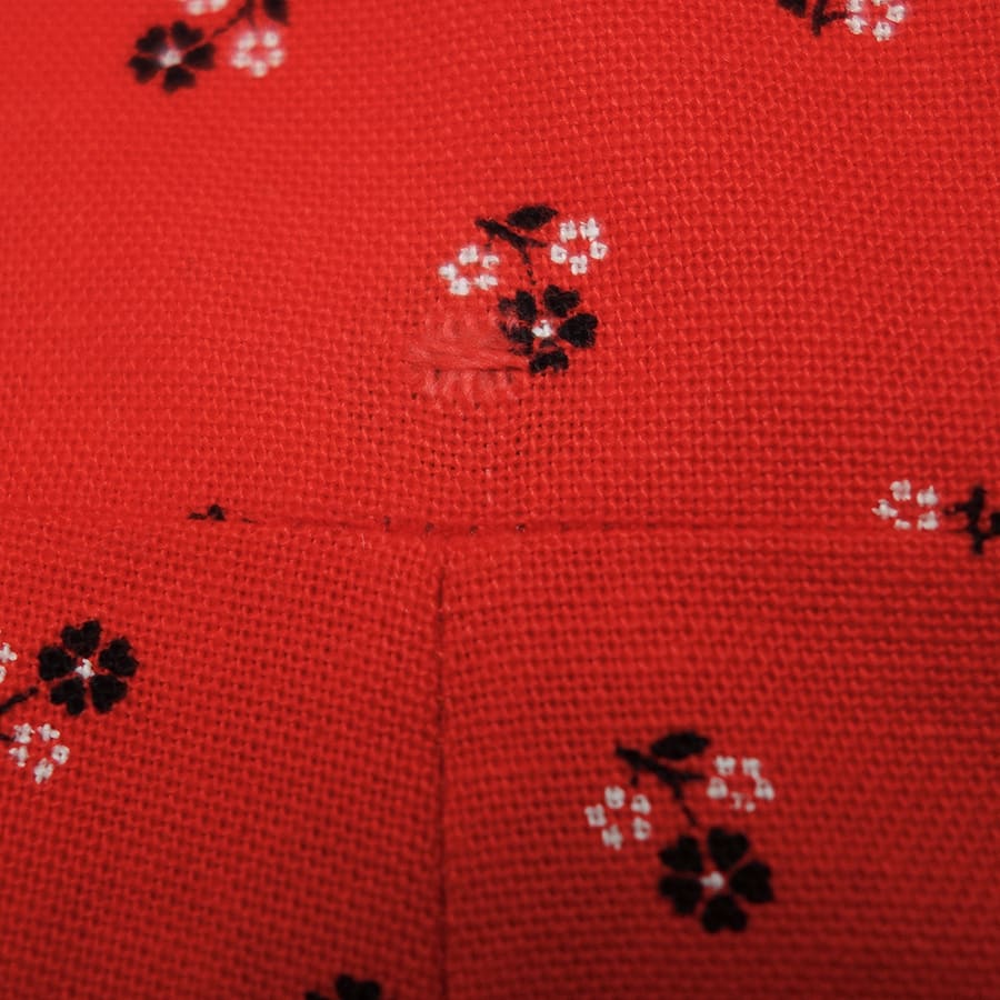 生地端処理がギザ縫いで作られている、ハンドメイド品。